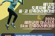 (포탈뉴스통신) 예천군은 오는 8일 오전 10시부터 예천읍 일원에서 '제12회 예천 도효자배 전국 중·고 단축마라톤대회' 및 '2026 예천군민 마스터즈 단축마라톤대회'를 개최한다고 밝혔다. 한국육상 중장거리 유망주 발굴에 중추적 역할을 해온 도효자배 대회는 고등부 10km, 중등부 5km 코스의 단축마라톤 대회로 개인전과 단체전 두 부문으로 나눠 치러지며, 한국중·고육상연맹과 예천군육상연맹이 공동으로 주최·주관한다. 특히 이번 대회는 코로나 팬데믹 이후 7년 만에 재개되는 예천군민 마스터즈 5km 단축마라톤 대회가 함께 열려 엘리트 중·고 선수 300여 명과 군민 마스터즈 500여 명이 어우러진 마라톤 축제의 장이 펼쳐질 전망이다. 대회 일정은 오전 10시 고등부, 오전 11시 30분 중등부 순으로 진행되며, 군민 마스터즈 대회는 오전 11시 35분에 출발 총성을 울릴 예정이다. 마라톤코스는 청소년수련관(출발)-개심사지교차로-천지원아파트-예천교-제방도로-예천여고-예천스타디움(도착)으로 구성되며, 대회 중 해당 구간 도로가 일부·일시 통제되고 예천교에서 우신강변아파트까지 이어지는 제방도로는 전면 통