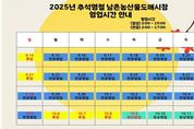 (포탈뉴스통신) 인천광역시 남촌농축산물도매시장관리사무소는 다가오는 추석 명절을 맞아 시민들이 안전하고 편리하게 도매시장을 이용할 수 있도록 종합대책을 마련·추진한다고 밝혔다. 이번 대책은 농·축산물 수급 안정과 함께 안전, 교통, 환경 관리에 중점을 두고 추진한다. 먼저 농·축산물 수급 안정을 위해 사과, 배, 배추, 무, 양파, 마늘, 감자, 밤, 대추 등 9개 주요 농산물 4,936톤과 소·돼지고기 등 축산물 592톤을 공급한다. 이는 지난해보다 15% 이상 늘어난 물량으로, 성수품을 충분히 확보해 시민들이 평시보다 저렴한 가격에 구매할 수 있도록 할 계획이다. 또한 시민들의 장보기 편의를 위해 시장 영업시간을 기존 오후 3시에서 오후 5시까지 2시간 연장한다. 정기 휴무일인 9월 28일과 10월 5일에도 정상 운영해 추석 장보기에 불편이 없도록 할 계획이다. 다만 추석 연휴 기간인 10월 6일부터 8일까지는 휴업하고, 9일부터 영업을 재개한다. 아울러, 불법 유통행위와 거래질서 위반을 막기 위한 지도·단속반을 편성해 운영한다. 비상장 거래·허가