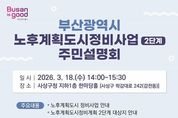 (포탈뉴스통신) 부산시는 국토교통부 및 정비지원기구와 함께 오는 3월 18일 오후 2시 사상구청 한마당홀에서 노후계획도시정비 2단계 사업 주민설명회를 개최한다고 밝혔다. 주민설명회에는 시를 비롯해 국토교통부와 노후계획도시정비지원기구인 국토연구원, 한국부동산원, 한국토지주택공사, 주택도시보증공사, 한국국토정보공사가 참여한다. 이번 주민설명회에서 시와 참여기관은 노후계획도시정비사업 2단계 구역인 다대, 만덕, 모라, 개금·당감 지역주민 등을 대상으로 ▲노후계획도시정비사업의 개념 및 장점 ▲정비사업절차 및 추정분담금 검증 ▲1기 신도시 추진현황 및 시사점 ▲정비사업 금융지원방안 ▲전자투표 안내 ▲2단계 구역계 등을 안내한다. 아울러 시는 오는 4월 노후계획도시정비 2단계 기본계획(안) 주민공람을 앞두고 지속적으로 주민과의 소통을 이어갈 예정이다. 시는 앞으로 구역별 설명회를 계획하고 있으며, ‘찾아가는 미래도시지원센터’를 상시 운영해 주민들의 궁금한 사항에 대응할 방침이다. 시는 이번 주민설명회에 주민참여율을 높이기 위해 구와 협력해 적극적인 홍보를 펼친다. 시는 포스터를 제작해 4개 구(