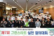 (포탈뉴스통신) 그린리더 울산남구협의회(회장 전정표)는 4일 문수컨벤션에서 회원 180여 명이 참석한 가운데 제7회 그린스타트 실천 결의대회를 개최했다. ‘그린스타트운동’은 저탄소 기후변화 대응의 국가적 비전인 ‘녹색성장을 통한 저탄소사회 구현’을 위해 일상생활에서 온실가스 줄이기를 실천하자는 범국민 실천운동이다. 이번 행사는 사랑의 이불 나눔 행사에 이어서 유공자 표창, 녹색생활 실천다짐 퍼포먼스 순으로 진행됐다. 남구협의회는 저탄소 녹색생활을 전파하고 비산업부문 온실가스 배출량 감축과 탄소포인트제 가입 독려 활동 등을 펼치고 있으며 특히 ‘재활용품 교환사업’으로 발생한 수익금으로 저소득층 107세대에게 400만 원 상당의 따뜻한 겨울을 보낼 수 있는 동계 이불 전달행사도 4년째 이어오고 있다. 전정표 남구협의회장은 “이번 그린스타트 실천 결의대회를 통해 회원들이 기후변화 대응 리더로서 녹색생활 실천 의지를 되살리는 계기가 될 것”이라며 “주민들이 공감할 수 있는 다양한 활동들을 지속적으로 펼쳐 온실가스 감축에 선도적인 역할을 다하겠다”고 말했다. 서동욱 남구청장은 “저탄소 녹색생활