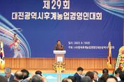 (포탈뉴스통신) 대전시의회 김영삼 부의장은 19일 농업기술센터에서 개최된 제29회 대전광역시 후계농업경영인대회에 참석해 농업인 권익 향상과 안정적인 경영환경 조성을 위한 정책적 지원을 약속했다. 이날 행사는 지역을 대표하는 단체·기관장, 후계농업경영인 및 가족 등이 300여 명이 참석한 가운데 우수 후계농업경영인 시상을 시작으로 주요내빈 축사, 기념떡 커팅식 순으로 진행됐고, 개회식이 끝난 뒤 문화·체육행사로 이어졌다. 김영삼 부의장은 “이번 행사가 29번째를 맞이할 수 있도록 그동안 우리 지역 먹거리를 책임지며 농업을 이어가 주시는 여러분의 열정과 헌신에 깊이 감사드린다”면서, “대전시의회는 그동안 청년농업인 육성·지원 조례와 치유농업 육성·지원 조례를 처리하는 등 대전시의 농업 활성화를 위해 노력해왔고, 앞으로도 여러분들의 안정적인 경영과 체계적인 농업발전 기반을 마련해 농촌의 가치가 더욱 높아지도록 최선을 다하겠다”고 말했다. [뉴스출처 : 대전시의회]