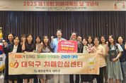 (포탈뉴스통신) 대전 대덕구는 19일 대전광역치매센터가 주관한 ‘2025년 치매극복의 날’ 기념행사에서 민관협력 우수사례 부문 우수상을 수상했다고 밝혔다. 대덕구 치매안심센터는 치매 고위험군과 환자 증가에 선제 대응하기 위해 지난 2월 민간단체 ‘그림책아 놀자’와 ‘엠아트 플라이’를 치매극복선도단체로 지정하고 다양한 치매 극복 활동을 추진해왔다. 구는 두 단체와 함께 △어린이와 어르신이 함께 듣는 치매예방 교육 △그림책을 활용한 인지자극 프로그램 △무용·음악·미술을 결합한 문화예술 융합 인지활동 등을 꾸준히 펼치며 대상자 참여를 이끌어왔다. 특히 세대 통합형 프로그램이 눈길을 끌었다. ‘그림책아 놀자’ 봉사단은 그림책 읽기와 놀이를 결합해 어르신과 아이들의 상호작용을 자연스럽게 유도, 인지 자극과 정서 안정 효과를 동시에 도모했다. 그뿐만 아니라 지역 경로당·어린이집·지역아동센터 등 생활권 기관과의 연계를 강화해 접근성을 높인 것도 성과로 꼽힌다. ‘엠아트 플라이’는 무용·음악·미술을 접목한 맞춤형 활동으로 주의 집중과 신체·감각 자극을 유도했다. 또한, 공모사