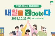 (포탈뉴스통신) 동작구가 오는 23일 오후 2시 구청 신청사에서 2025 취업박람회 ‘내일을 잡(Job)다’를 개최한다고 밝혔다. 이번 박람회는 구직자의 취업 스트레스 해소와 역량 강화를 지원하기 위해 마련됐다. 관내 유한양행 등 다수의 우수기업과 유관기관이 참여해 채용 및 직업 탐색 기회를 제공할 예정이다. 특히, 올해는 축제 결합형 일자리박람회로서 신청사 곳곳에서 다양한 체험 부스와 부대행사가 함께 운영된다. 먼저, 4층 대강당에서는 관내 유한양행 등 20여 개의 참여기업이 ‘채용부스’를 설치해 구직자를 대상으로 현장 면접과 간접 채용을 진행한다. 또한 구청을 비롯해 동작취업지원센터, 서울관악고용복지+센터 등 유관기관에서 준비한 ‘홍보부스’에서는 취업·직업훈련·고용지원 정보를 제공한다. 이와 함께 4층 소회의실에는 △AI 인적성 검사 △취업타로 △퍼스널컬러 진단 △이력서 사진 촬영 등으로 구성된 ‘취업지원존’이 마련되며, 이곳에서는 이력서·자기소개서 1:1 컨설팅도 받을 수 있다. 1층 로비에는 △메이크업 아티스트 △아로마 향수 만들기 △네일아트 △캘리그라피 등 ‘직업