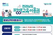 (포탈뉴스통신) 전라남도와 전남인재평생교육진흥원은 오는 27일까지 저소득층과 장애인을 대상으로 ‘2026 전라남도 평생교육이용권’ 1차 신청을 받는다고 밝혔다. 평생교육이용권은 사회·경제적 여건에 따른 평생교육 참여 격차를 완화하고 교육 기회를 확대하기 위해 교육비를 지원하는 제도다. 연간 1인당 35만 원 상당의 포인트를 충전해 지급하는 방식으로 운영된다. 지원 대상은 전남에 주민등록을 둔 19세 이상 성인과 등록장애인, 65세 이상 노인, 디지털 평생교육 수강 희망자 등이다. 1차 모집은 저소득층과 등록장애인이 대상이며, 오는 4월 노인과 디지털 평생교육 수강 희망자, 일반 도민을 대상으로 추가 접수를 진행할 계획이다. 이용권 신청은 전남도 평생교육이용권 누리집(저소득층 대상)과 보조금24(등록장애인 대상), 각 시군 평생교육 담당 부서에서 할 수 있다. 선정자는 NH농협 채움카드를 통해 포인트를 지급받아 8월 31일까지 전국 평생교육기관에서 사용할 수 있다. 전남에는 평생교육이용권 사용기관 148곳이 등록됐으며, 평생교육이용권 누리집과 전남인재평생교육진흥원