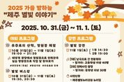 (포탈뉴스통신) 제주별빛누리공원은 10월 31일과 11월 1일 이틀간 누구나 자유롭게 참가할 수 있는 ‘2025년 가을 밤하늘 제주별빛이야기’ 행사를 개최한다. 이번 행사는 저녁 7시부터 9시 30분까지 현장 참여로 진행되며, 주요 프로그램으로는 야외 행사인 ‘우주로의 산책’, ‘망원경체험’, ‘별빛버스킹’과 11월 1일 ‘별빛강연’으로 구성됐다. `우주로의 산책`은 야외에서 도내외 아마추어 천문가들의 다양한 망원경으로 가을 밤하늘에 보이는 토성, 달 그리고 다양한 별을 관측하고 궁금한 점을 물어볼 수 있는 프로그램이다. `망원경체험`은 태양계 광장에서 별자리 설명을 듣고, 참여자가 직접 천체망원경을 조작하여 달을 찾아보는 체험이다. `별빛버스킹`은 가을 밤하늘 아래 다양한 곡을 오카리나와 에어로폰 연주로 들어볼 수 있는 공연으로 하루 두 차례(저녁 7시 30분, 8시 30분) 진행한다. 돗자리를 준비하면 자유로운 자리에서 감상할 수 있다. `별빛강연`은 별도 참가 비용은 없으며, 11월 1일 1부와 2부로 나눠 열린다. 1부(오후 2시 30분) ‘남극으로간 천문학자’는 고