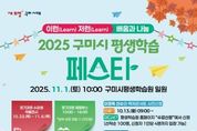 (포탈뉴스통신) 구미시는 11월 1일 오전 10시부터 평생학습원 일원에서 ‘2025 구미시 평생학습 페스타’를 개최한다. 이번 행사는 한 해 동안 시민들이 평생학습을 통해 쌓은 결실을 나누고, 배우며 성장한 시민들의 이야기를 함께 공유하는 자리다. 단순한 성과 전시를 넘어, 배움이 일상이 되는 도시 구미의 비전을 시민과 함께 체감하는 축제로 마련됐다. 전시 부문에서는 민화와 여행사진작가반 등 13개 강좌 수강생들이 출품한 250여 점의 작품이 평생학습원 1·2층 로비에 전시된다. 공연 부문에서는 난타와 라인댄스 등 8개의 평생학습 수강생 및 동아리 회원들이 소공원 무대에서 발표회를 개최한다. 체험 프로그램도 다채롭다. 시민들은 단순 관람을 넘어 평생학습 정기강좌를 직접 체험해볼 수 있도록 손뜨개방과 어반스케치 등 14개 강좌의 체험부스가 주차장에 마련된다. 사전 접수로 인기가 높았던 원데이 클래스는 ‘종이비행기 국가대표 이정욱 선수의 렉쳐콘서트’로 구성되어 가족 단위 참가자들에게 소중한 추억을 선사한다. 구미소재 3개 대학도 페스타에 힘을 보탠다. 금오공대의 캘리그라피, 구미대의 타로심리상담과 경운대의 심폐소생
