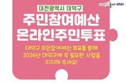 (포탈뉴스통신) 대전 대덕구는 오는 22~30일 2026년 주민참여예산 사업 선정을 위한 온라인 주민투표를 진행한다고 16일 밝혔다. 올해 투표 대상은 온라인 접수와 동별 지역회의를 거쳐 우선순위로 선정된 안건 가운데 소관 부서 적격 검토를 통과한 28개 사업이다. 대덕구 거주민은 물론 대덕구 소재 직장인·학생 모두 투표에 참여할 수 있으며, 대덕구 주민참여예산제 홈페이지에 로그인해 본인인증을 마친 뒤, 관심 사업 최대 3개를 선택해 투표하면 된다. 최종 결과는 주민투표 점수와 ‘예산참여 구민위원회’ 서면심사를 합산해 고득점순으로 확정, 내년도 예산(총 2억 4000만원)에 반영된다. 최충규 대덕구청장은 “주민참여예산제는 구민 참여로 완성되는 제도”라며 “많은 주민이 투표에 동참해 대덕구에 꼭 필요한 사업을 직접 선택해 주시길 바란다”고 말했다. 한편, 대덕구는 주민참여예산 사업선정을 위해 자체 홈페이지를 통한 온라인 사업제안, 투표 절차를 진행해 오고 있다. [뉴스출처 : 대전시대덕구]