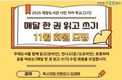 (포탈뉴스통신) 인천광역시교육청계양도서관은 인천시민을 대상으로 11월 7일부터 21일까지 시민저자학교 2기 프로그램 ‘매달 한 권 읽고 쓰기’를 운영한다. ‘매달 한 권 읽고 쓰기’는 한 권의 책을 깊이 읽고 그 안에서 발견한 생각과 감정을 글로 표현하는 시민 창작형 독서 프로그램으로 11월의 주제 도서는 김금희 작가의 ‘대온실 수리 보고서’이다. 참가자들은 작품을 중심으로 서로의 다름을 이해하고 글쓰기를 통해 자신과 세상을 성찰하는 시간을 갖는다. 참가 신청은 10월 27일부터 오전 9시부터 계양도서관 누리집에서 가능하며, 자세한 내용은 누리집 공지사항을 참고하거나 종합자료실로 문의하면 된다. [뉴스출처 : 인천광역시교육청]