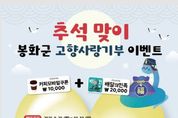 (포탈뉴스통신) 봉화군은 민족 최대의 명절인 추석을 맞아 고향사랑기부제에 대한 홍보와 기부문화 확산을 위해 오는 9월 29일부터 10월 19일까지 경품 이벤트를 실시한다. 이벤트 기간 중 봉화군에 건당 10만 원 이상 기부하고 답례품까지 선택을 완료한 선착순 100명에게는, 배달의민족 2만 원권 기프티콘 또는 1만 원 상당의 커피 상품권을 랜덤으로 증정할 예정이다. 경품 추첨 결과는 10월 24일 개별 통보된다. 또한 이벤트 기간 중 오는 10월 16일부터 19일까지 열리는 ‘봉화송이축제’ 행사장 내 고향사랑 홍보 부스를 방문해 현장 기부에 참여하면 봉화사랑상품권 2만원을 추가로 지급한다. 다만, 동일인이 이벤트에 중복 참여할 경우 혜택은 제한된다. 금대원 재정과장은 “고향을 생각하는 따듯한 마음이 모여 봉화의 미래를 밝히는 큰 힘이 될 것이다.”면서 “이번 추석에는 가족과 함께 나눔과 기부의 의미를 되새기며 고향사랑 기부에 동참해 주시기를 바란다.”라고 말했다. 한편, 고향사랑기부금은 ‘고향사랑e음’ 누리집이나 전국 농‧축협 영업점을 방문해 기부할 수 있다. [뉴스출처