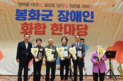 (포탈뉴스통신) 봉화군은 지난 23일 봉화군민회관에서 경북시각장애인연합회 봉화지회 주관으로 ‘제18회 봉화군 장애인 화합한마당’ 행사를 개최했다. 이번 행사는 제45주년 장애인의 날을 기념해 ‘행복을 바라봄, 일상을 담아봄, 희망을 이어봄’이란 슬로건 아래 장애에 대한 이해를 높이고, 장애인과 비장애인이 함께 공감하고 소통하는 장을 마련하고자 열렸다. 아울러 유공자 표창을 통해 장애인과 자원봉사자의 사기진작을 도모했다. 이날 행사에는 지역 기관단체장 및 관내 장애인 및 700여 명이 참석한 가운데 성황리에 진행됐다. 식전 행사인 오카리나 연주공연을 시작으로 1부 개회식과 시상식, 대회사에 이어 2부 축하공연, 경품추첨 순으로 진행됐으며 참가자들은 화합과 소통의 의미를 되새기며 즐거운 시간을 보냈다. 행사에 참여한 장애인들은 “시간이 갈수록 장애인에 대한 편견이 조금씩 줄어들고 있음을 느낀다.”면서 “이런 행사가 더 많아져서 장애인과 비장애인이 자연스럽게 소통할 수 있는 기회가 늘어났으면 좋겠다.”라고 말했다. 한편 박현국 봉화군수는 “장애인 화합 한마당 행사를 통해 장애인에