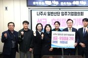 (포탈뉴스통신) 전라남도 나주시는 지난 3일 나주 일반산단 입주기업협의회가 연말연시를 맞아 지역 내 취약계층 지원을 위해 ‘희망 2026 나눔 캠페인 성금’ 300만 원과 자체 생산한 식료품 960만 원 상당 등 총 1260만 원을 기탁했다고 밝혔다. 이번 기탁은 일반산단 입주기업들이 경기침체 속에서도 지역사회 나눔에 동참하자는 뜻을 모아 추진된 것으로 식품 후원은 일반산단 내 10개 업체가 생산한 제품들로 구성돼 지역기업의 특색을 살린 후원이라는 점에서 의미를 더했다. 이날 나주시청 소회의실에서 열린 기탁식에는 윤병태 나주시장과 한윤경 입주기업협의회 회장, 나상채 사무국장 등 협의회 임원진이 참석해 나눔의 뜻을 함께했다. 한윤경 회장은 “협의회는 평소에도 지역 나눔 활동에 꾸준히 참여해 왔다”며 “연말을 맞아 기업들의 마음을 모아 마련한 기탁품이 어려운 이웃들에게 따뜻한 보탬이 되길 바란다”고 말했다. 윤병태 나주시장은 “일반산단은 나주 경제의 든든한 중심축이며 입주기업들의 나눔 실천은 지역사회에 큰 힘이 된다”며 “성금과 더불어 자체 생산 식품까지 후원해 주신 협의회에 깊이 감사드린다”고 밝혔다