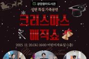 (포탈뉴스통신) 광양중마도서관이 오는 12월 20일 오후 4시 어린이실에서 성탄 특집 공연 ‘크리스마스 매직쇼’를 개최한다. 공연을 맡은 ‘펀앤쇼’는 김정호 마술사가 이끄는 어린이 전문 공연팀으로, 지난 10여 년간 어린이대공원, 청주문화제, 삼성 어린이대축제 버블쇼 등 다양한 무대에서 5,000회 이상 공연하며 웃음과 감동을 전해왔다. 이번 공연에서는 크리스마스 분위기를 담은 테마 마술와 풍선을 활용한 색다른 매직 퍼포먼스가 펼쳐진다. 특히 공연팀이 직접 기획한 이야기형 구성으로 아이들의 흥미와 몰입도를 높이고, 어린이가 무대에 함께 참여하는 순서도 마련해 가족 모두에게 따뜻한 성탄의 추억을 선사할 예정이다. 관람 신청은 12월 8일 오전 10시부터 광양시립도서관 누리집에서 진행된다. 선착순 80명까지 신청할 수 있으며, 관람료는 무료다. 자세한 사항은 시립도서관 누리집을 확인하거나 중마도서관으로 문의하면 된다. 김현숙 도서관과장은 “아이들이 이번 공연을 통해 새로운 상상과 창의의 세계를 경험하고 마술의 원리를 탐구하는 재미를 느끼길 기대한다”며 “도서관을 찾은 가족 모두