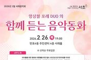 (포탈뉴스통신) 서울 서초구는 26일 오후 7시, 반포4동주민센터 4층 서래아트홀에서 2월 서래음악회 ‘앙상블 포레 DUO의 함께 듣는 음악동화‘를 개최한다고 밝혔다. 반포4동 주민자치위원회가 주최하는 이번 행사는 피아노 듀오 ’앙상블 포레 DUO‘가 선보이는 음악동화 콘서트로 지역 주민들에게 다채로운 음악적 경험을 제공하고자 마련됐다. 아이들을 위한 동화 형식과 어른들을 위한 클래식 감성을 함께 담아 남녀노소 모두가 공감하고 즐길 수 있는 무대가 꾸며질 것으로 기대된다. 공연 프로그램은 ▲고양이 춤(편곡 : 조은) ▲S. Prokofiev 'Peter and the Wolf Op.67(피터와 늑대)' ▲김영진 그림책 '아빠의 이상한 퇴근길' 음악동화 ▲Joo-Hye Lee 'Korean Children’s Song Overture for 1 Piano 4 Hands' 등으로 구성된다. 특히 프로코피예프의 '피터와 늑대'는 내레이션과 함께 진행돼 작품 속 등장인물과 음악적 특징을 보다 쉽게 이해할 수 있도록 도울 예정이다. 또, 마지막 무대는 관객들과 함께 노래하며 공연을 마무리하는 관객 참여 형식으로 꾸며진다.