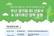 (포탈뉴스통신) 부산시는 '제17회 자원순환의 날(9월 6일)'과 '제6회 푸른 하늘의 날(9월 7일)'을 기념해 오늘(4일) 공동 기념식을 개최한다고 밝혔다. 공동 기념식은 시청 12층 국제회의장에서 오전 10시에 개최되며 ▲부산 공기질 브랜드(BI) 선포식 ▲유공자 표창 ▲시민 체험 공모전 시상 ▲대기 개선 정책 토론회(포럼)이 진행된다. 특히 올해 제작한 ‘부산공기 깨끗에어(air)’ 공기질 브랜드(Brand Identity)를 이번 기념식에서 처음 공개한다. 또한, 같은 시간 시청 녹음광장에서는 '제17회 자원순환의 날'을 기념하는 연계 행사가 열려, 시민이 직접 참여해 자원순환의 중요성을 체감할 수 있는 다양한 전시·체험 프로그램이 진행된다. 플라스틱 장난감 순환 작품 전시는 지역 어린이집 원생 500여 명이 참가 신청을 해 녹음광장에서 직접 체험하는 자리로 마련된다. 재활용품 교환 장터(마켓)에서는 사용하지 않는 에코백 등 재활용품을 가져오면 종량제 봉투와 친환경 화장지로 교환할 수 있다. 플라스틱-없음(프리) 캠페인은 행사 당일 오후 1시부터 3시까지 진행되며,