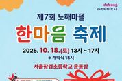 (포탈뉴스통신) 서울 도봉구 쌍문2동이 10월 18일 오후 1시 서울창경초등학교에서 ‘제7회 노해마을 한마음 축제’를 개최한다. 쌍문2동 축제 추진위원회가 주최하는 이번 축제는 올해로 7회째를 맞았다. 주민들의 관심과 참여가 해마다 더해지며 쌍문2동을 대표하는 마을 공동체 행사로 자리매김하고 있다. 이번 축제는 다양한 공연과 부대행사로 꾸며진다. 주민노래자랑을 비롯해 케이팝(K-POP) 댄스 공연, 무술 시범 등이 선보이며, 많은 참여형 부스들이 마련된다. 체험 부스로는 캐리커처, 페이스페인팅, 한지공예 등이, 먹거리 부스로는 떡볶이, 부침개, 순대, 두부김치, 닭강정 등이 준비된다. 이외에도 도봉구치매안심센터, 도봉구가족센터, 도봉노인종합복지관, 둘리뮤지엄 등 관계 기관에서 홍보 부스를 운영한다. 김정숙 쌍문2동장은 “이번 축제가 주민 간에 정을 나누는 뜻깊은 자리가 되길 바란다. 축제 준비에 애써주신 쌍문2동 축제 추진위원회 관계자분들에게 감사드린다.”라고 말했다. [뉴스출처 : 서울특별시 도봉구]