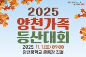 (포탈뉴스통신) 양천구는 구민의 건강 증진과 건전한 여가 활동을 지원하기 위해 11월 1일 지양산에서 ‘2025 양천가족 등산대회’를 개최한다고 밝혔다. 이번 대회는 양천구가 주최하고 양천구체육회가 주관하는 행사로, 가족· 이웃과 함께 숲길을 걸으며 깊어가는 가을 정취도 느끼고 화합도 도모할 수 있도록 마련됐다. 등산대회가 열릴 지양산은 해발 125m의 낮은 산으로 아기자기한 오솔길과 울창한 숲이 잘 조성된 도심 속 자연 명소다. 특히 이번 대회 산행코스인 지양산둘레길은 단풍잎이 아름다워 가을철 가족 단위 방문객이 많이 찾는 곳이다. 등산 구간은 양천중학교부터 까치울터널, 국기봉(반환점), 해맞이봉을 거쳐 유아숲체험장으로 돌아오는 총 4.5km 코스로, 약 1시간 30분 정도 소요된다. 완만한 경사와 평탄한 길 위주로 구성된 이번 코스는 아이부터 어르신까지 온 가족이 함께 걷기에 적합하다. 구간 중간에는 버스킹 공연도 마련되어 가족뿐 아니라 연인, 친구 등과 함께 가을산행의 낭만을 느낄 수 있다. 참가는 양천구민 누구나 가능하며, 선착순 1,000명을 모집한다. 신청은 오는 10월 31