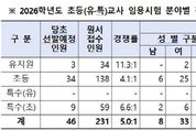 (포탈뉴스통신) 대전시교육청은 2026학년도 대전시 공립 유치원·초등학교·특수학교(유치원·초등) 교사 임용후보자 선정경쟁시험 최종합격자를 1월 28일 오전 10시, 시교육청 누리집(고시/공고)을 통해 발표했다. 이번 임용시험은 총 46명 선발 예정에 231명이 지원하여 평균 5대 1의 경쟁률을 기록했다. 특히 수험생들은 지난해 11월 실시된 1차시험(교직논술, 교육과정)부터 올해 1월 2차시험(교직적성 심층면접 및 수업실연 등)까지 이어지는 엄격하고 까다로운 검증 과정을 거쳤으며, 이를 통과한 총 41명이 최종 합격의 영예를 안았다. 분야별 최종 합격 인원은 유치원 2명, 초등 31명, 특수(초등) 8명이다. 합격자 현황을 성별로 보면 남자 8명(19.5%), 여자 33명(80.5%)이며, 학력별로는 졸업자 16명(39%), 졸업예정자 25명(61%)으로 집계됐다. 최종합격자는 2월 4일 임용후보자 구비서류를 갖춰 등록해야 하며, 대전교육연수원에서 실시하는 2026 신규임용 예정교사 직무연수를 이수한 후 대전 관내 학교에 임용될 예정이다. [뉴스출처 : 대전시교육청]