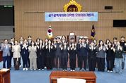(포탈뉴스통신) 광주광역시의회는 10월 31일, 조선대학교·전남대학교와 공동으로 모의의회 개원식을 개최했다. 시의회 본회의장에서 개최된 개원식에는 30여 명의 대학생 모의의회 의원들과 정다은 의회운영위원장, 강수정 조선대학교 정치외교학과장 등이 참석했다. 모의의회 의장인 조선대학교 정치외교학과 이가빈 학생은 “정치는 누군가가 대신해 주는 것이 아니라 우리가 직접 참여할 때 비로소 의미가 생긴다”며 “이번 모의시의회가 광주를 이끌어 갈 청년 리더들이 성장하는 출발점이 되길 바란다”고 의지를 다졌다. 격려에 나선 정다은 운영위원장은 “의견이 다를 수 있지만 그 다름을 존중하고 함께 길을 만들어가는 과정이 바로 민주주의”라며 여러분의 아이디어와 용기가 광주의 미래를 밝히는 빛이 되길 바란다”고 응원의 말을 전했다. 이어 조선대학교 정치외교학과 강수정 학과장은 “모의의회는 이름만 ‘모의’일 뿐, 그 안에서 이뤄지는 고민과 대화, 협력은 결코 가상이 아니다”라며 “여러분이 오늘 시작하는 이 경험이 민주주의의 핵심인 대화와 참여를 몸으로 익히는 계기가 되길 바란다”고 격려했다. 대학생 모의의회는