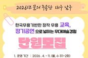 (포탈뉴스통신) 대구 남구청소년창작센터에서 한국문화예술교육진흥원 공모사업으로 운영되는 '꿈의 무용단 대구 남구' 2기 단원을 모집한다고 밝혔다. '꿈의 무용단'은 아동·청소년 대상 문화예술교육 지원사업의 일환으로, 전문 예술교육을 통해 신체 표현력과 창의성을 키우고 협업과 존중의 가치를 배우는 문화예술 프로그램이다. 이번 2기 운영은 2025년 운영 성과를 기반으로, 지난해와 유사한 체계와 교육과정을 유지하면서도 참여 아동의 성장 경험을 더욱 강화할 예정이다. 전문 예술교육 단체인 딥컴퍼니가 협력 기관으로 참여하여 체계적이고 전문적인 무용 교육을 제공한다. 단순 기술 습득을 넘어 신체 인식, 창의적 표현, 공동체 협업 과정, 정기공연 운영까지 포함된 통합 예술교육 프로그램으로 구성된다. 특히 사업의 참가비, 교육비, 공연 준비 과정 등 전 과정이 무료로 지원되며, 운영 기간은 4월부터 11월까지로 문화예술 접근 기회 확대에 기여할 예정이다. 이를 통해 지역 내 문화 격차를 완화하고, 아동의 문화예술 향유권을 실질적으로 보장한다는 점에서 의미가 크다. 모집 기간은 3월 20일까지로 모집