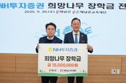 (포탈뉴스통신) NH투자증권에서 인재육성을 위한‘희망나무 장학금’1,500만원을 해남군에 전달했다. 해남군청에서 진행된 전달식에는 명현관 군수, NH투자증권 임철순 ESG본부장, 농협중앙회 하정필 해남군지부장과 지역 농협장들이 함께했다. 해남군은 전달받은 장학금을 해남군교육재단을 통해 지역 내 다문화가정, 조손가정, 한부모가정 등 저소득 우수 고등학생 10명을 선발, 1인당 150만원씩 지급할 계획이다. 지난 2005년부터 전국 우수 고교생에 장학금을 지원해온 NH투자증권은 올해부터는 농촌지역 지자체에 직접 장학금을 지원하는 방식으로 제도를 개편했다. NH투자증권 임철순 ESG본부장은“희망나무 장학금은 농촌지역 학생들이 희망과 용기를 갖고 학업에 매진하여 꿈을 이룰 수 있도록 돕기 위한 것”이라며“해남군과의 협력을 통해 선발될 학생들이 꿈을 향해 나아갈 수 있도록 앞으로도 응원하겠다”고 밝혔다. 명현관 군수는“NH투자증권의 지역 인재 양성을 위한 관심과 지원에 진심으로 감사드린다”며“이번에 전달받은 장학금을 통해 어려운 환경 속에서도 학업에 정진하는 우리 해남군 학생들에게 큰 힘이 되고