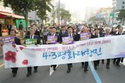 (포탈뉴스통신) 제주특별자치도는 제78주년 4·3희생자 추념식을 하루 앞둔 2일, 제주 도심이 세대와 지역을 아우르는 거대한 평화의 물결로 뒤덮였다. 4·3유족과 도민을 비롯해 전국 대학생, 청소년, 시민단체가 세 갈래 출발 지점에서 발을 떼 하나로 모이는 ‘4·3 평화 대행진’이 펼쳐졌다. 이날 행진은 ‘기억의 계승’과 ‘과거사 연대’라는 4·3의 핵심 가치를 온몸으로 구현한 자리였다. 4·3 평화 대행진은 관덕정, 제주민속자연사박물관, 제주시청 앞 등 세 곳에서 동시에 시작됐다. 관덕정에서는 전국 대학생들이 4·3 평화 선언과 문화공연으로 행진의 서막을 알렸으며, 민속자연사박물관에서는 청소년들이 체험 프로그램과 타악 퍼포먼스를 통해 4·3의 가치를 공유하며 첫걸음을 내딛었다. 제주시청 정문 앞에서는 유족과 시민단체가 참여한 ‘4·3특별법 개정 촉구 결의대회’가 열려 역사 왜곡 처벌 규정 마련의 시급성을 전국에 알렸다. 오후 5시경 세 행진단이 한자리에 합류한 뒤 제주문예회관까지 공동 행진을 이어갔다. 합류 지점에서는 희생자 1만 5,218명을 상징하는 대형 현수막을 행진단이 직접