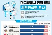 (포탈뉴스통신) 대구광역시는 지난해 11월 27일부터 12월 3일까지 만 18세 이상 대구시민 1,001명을 대상으로 시정 전반에 대한 ‘시민인식도 조사’를 실시했다. 이번 조사는 시민들의 다양한 의견을 파악해 향후 시정 운영과 주요 정책 수립에 활용하기 위한 것으로, ▲대구시 거주 만족도 ▲대구시가 역점 추진해야 할 분야 및 핵심사업 우선순위 ▲재정운영 대책 ▲시정 성과 만족도 등을 중심으로 조사했다. 주요 결과는 다음과 같다. 먼저, 대구시 거주 만족도와 관련해 교통, 교육, 생활물가, 거주여건, 경제여건, 문화체육관광 여건, 생활환경 등 시민 삶의 질과 관련된 7개 분야 만족도를 조사한 결과, 교통여건(87.6%), 생활환경(81.8%), 거주여건(79.5%) 등은 높은 만족도를 보였다. 반면 경제여건은 불만족 비율이 62.9%로, 조사 항목 중 유일하게 부정응답이 많았다. 이는 시민들이 일상생활 인프라에 대해서는 전반적으로 만족하고 있지만, 경제 상황은 어렵다고 인식하는 이중적 구조를 보여주고 있다. 다음으로, 향후 역점 추진분야 및 핵심사업에서는 대구시가 가장 역