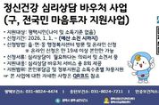 (포탈뉴스통신) 평택시에서는 2025년 전국민 마음투자 지원사업의 효과성을 평가하고 서비스 질적 향상을 도모하기 위하여 서비스 이용 시민을 대상으로 만족도 조사를 진행했다. '전국민 마음투자 지원사업'은 우울·불안 등 정서적 어려움이 있는 시민에게 대화 기반의 심리상담 이용권(바우처) 서비스를 총 8회기 지원하는 국가 정신건강 지원사업이다. 평택시는 2025년 한해 965명의 시민이 심리상담 서비스를 이용했으며, 지난 1월 5일부터 18일까지 이용자 전원을 대상으로 익명으로 진행한 만족도 조사에서 269명의 이용자가 응답했고, 서비스 전문성과 만족도 분야 등 총 10개 문항에서 100점 만점에 평균 90.3의 높은 점수로 긍정적인 평가를 나타냈다. 특히 서비스 재이용 의사 여부를 묻는 문항에 91.8점으로 가장 높은 평가를 받았고, 타인에게 서비스 추천 여부 91.7점, 상담 결과 정신건강에 도움이 됐다는 90.6점으로 나타났다. 이용 소감으로는 “속마음을 털어놓으니 마음의 짐이 줄어든거 같다”, “불안이 사라지고, 안정감을 되찾았다”, “화를 다스리고 다른 사람들과 화합하는 방법을 깨우치게 됐다”