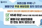 (포탈뉴스통신) 부천시는 폐렴으로 인한 중증 질환과 합병증을 예방하기 위해 65세 이상 어르신을 대상으로 폐렴구균 예방접종 참여를 당부하고 있다. 폐렴구균은 세균성 폐렴의 주요 원인균으로 전체 세균성 폐렴의 40% 이상을 차지하며, 균혈증과 뇌수막염 등 중증 감염을 유발할 수 있어 고령층의 각별한 주의가 필요하다. 이에 따라 예방접종을 통한 사전 예방의 중요성이 강조되고 있다. 국가예방접종사업에 따라 65세 이상 어르신 중 폐렴구균 예방접종을 받지 않은 대상자는 무료 접종이 가능하며, 주민등록번호 기준 1961년 12월 31일 이전 출생자가 해당된다. 접종 백신은 폐렴구균 23가 다당백신(PPSV23)으로, 평생 1회 무료 접종을 지원한다. 예방접종은 주소지와 관계없이 가까운 지정 의료기관 또는 보건소에서 받을 수 있으며, 방문 전 예방접종도우미 누리집이나 의료기관에 문의해 접종 가능 여부를 확인해야 한다. 송정원 부천시 보건소장은 “폐렴구균 감염은 고령층에서 중증으로 진행될 위험이 높은 만큼, 미접종 어르신은 예방접종을 완료해 주시길 바란다”며 “건강한 노후를 위해 예방접종에 적극 참