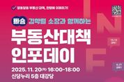 (포탈뉴스통신) 서울 중구가 최근 잇따라 발표된 부동산정책으로 혼란스러운 주민들에게 부동산 정책과 이슈를 이해할 수 있도록 오는 20일 '부동산대책 인포데이'를 열고 궁금증을 해소할 수 있는 기회를 마련한다. 신당누리센터 5층 대강당에서 오후 4시부터 열리는 '부동산대책 인포데이'는 ‘알쏭달쏭 정부 부동산 대책, 한방에 이해하기!’를 주제로 부동산 시장의 흐름과 정책 방향을 짚어보는 시간이다. 이날 강의는 정비사업 조합원을 비롯해 부동산에 관심 있는 주민 누구나 참여할 수 있다. 부동산 인플루언서 김학렬(필명 빠숑)과 김종화 회계사(세무사)가 함께해 ▲2025년도 중앙정부와 서울시 부동산 정책 비교 및 주요 이슈 정리 ▲무주택자·1주택자·다주택자 등 포지션별 시장 대응 전략 ▲부동산 세법 주요 변화 등을 알기 쉽게 설명한다. 이어 11월 26일 오후 7시에는 '건축물 양성화 인포데이'를 열고 건축 관계 법령 위반사항을 주민 눈높이에 맞게 안내한다. 최태숙 건축사가 강사로 나서 건축관계법령 주요 위반사례를 통해 건축법 위반 예방 교육을 실시한다. 또한, 중구청 라전희 도심재정비전략추진단장은 남산고도지구 완화, 정
