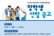 (포탈뉴스통신) (재)여주시인재육성장학회는 ‘2026년 여주시인재육성장학회 장학생 선발공고’를 여주시인재육성장학회 홈페이지 및 여주시청 홈페이지에 게시했다 올해 선발인원은 입학우수 36명, 우수 149명, 특기우수 38명, 여주장학생, 재해구호장학생등 5개 분야 223명이며, 조건에 맞는 분야를 선택하여 지원 하면 된다 장학생 신청 접수는 3월 9일부터 3월31일까지로 방문, 우편 또는 온라인 접수가 가능하고, 장학생 선발 및 장학증서 수여식은 5월에 실시할 예정이다. [뉴스출처 : 경기도 여주시]