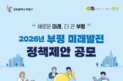 (포탈뉴스통신) 부평구는 2026년도 ‘부평 미래발전 정책 제안 공모’를 2월 한 달간 실시한다. 이번 공모는 ‘새로운 미래, 더 큰 부평’을 부제로, 정책 수립과 결정 과정에 구민 참여를 확대하고 다양한 의견을 반영해 행정의 투명성을 높이기 위해 마련됐다. 아울러 구민과의 지속적인 소통을 통해 미래로 도약하는 부평의 혁신을 이끌겠다는 의미를 담고 있다. 공모분야는 ▲구민 소통 및 협력 정책 ▲부평경제 활성화 정책 ▲부평 문화도시발전 정책 ▲안전한 부평을 만들기 위한 정책 ▲누구나 행복한 부평을 위한 복지정책 ▲도시 환경 인프라 확충 정책 ▲아동친화 도시 조성 정책 ▲기타 부평의 미래발전을 위한 모든 정책이다. 특히 올해는 ‘부평의 미래발전을 위한 생활밀착형 정책’을 지정주제를 추가해, 일상 속 불편을 개선하고 생활을 더욱 편리하게 만들 수 있는 작은 아이디어도 함께 공모한다. 부평구 발전에 관심 있는 누구나 참여할 수 있으며, 부평구청 누리집 내 ‘부평 정책제안 톡톡’을 통해 신청하면 된다. 이 밖에도 우편, 전자우편, 방문 제출도 가능하다. 제안된 의견들은 부평의 미래발