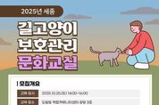 (포탈뉴스통신) 세종특별자치시가 오는 25일 도담동 행복누림터(복합커뮤니티센터) 강당에서 길고양이 보호관리 문화교실을 연다고 밝혔다. 농림축산식품부가 지원하는 동물복지 교육프로그램 사업 일환으로 진행되는 이번 강좌는 길고양이 관련 주민 갈등을 해소하기 위해 마련됐다. 강좌에서는 깨끗하게 밥 주기, 올바른 중성화 방법 등을 안내할 예정이다. 문화교실 참여는 동물사랑배움터 누리집을 통해 회원가입을 완료한 후 오프라인 교육 신청을 완료하면 된다. 이번 문화교실은 온라인 중계(ZOOM)로도 실시간 진행돼 현장방문이 어려운 경우 온라인으로 참여할 수 있다. 안병철 동물정책과장은 “동물복지에 대한 시민들의 관심이 높아진 만큼 시에서도 다양한 교육프로그램을 마련하도록 노력하겠다”며 “이번 교육이 길고양이 돌봄과 주민 간 갈등 해소에 도움이 되길 바란다”고 말했다. [뉴스출처 : 세종시]