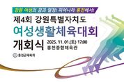 (포탈뉴스통신) 제4회 강원특별자치도 여성생활체육대회가 11월 1일부터 11월 2일까지 2일간 종목별 경기장에서 진행된다. 강원특별자치도체육회가 주최하고, 홍천군체육회와 강원특별자치도 회원종목단체가 주관하는 이번 도 여성생활체육대회는 강원 여성 체육인의 화합과 우정의 대축제를 만들기 위해 마련됐다. 이번 대회 종목은 게이트볼·국학기공·그라운드골프·배구·배드민턴·볼링 등 총 13개 종목이며, 선수와 대회 운영진 등 3,300여 명이 참여해 그동안 갈고닦은 기량을 펼칠 예정이다. 이번 제4회 강원특별자치도 여성생활체육대회 개최를 통해 생활체육과 건강에 대한 군민의 관심을 높이고, 체육활동을 통한 여가문화 정착과 지역경제 활성화에 기여할 것으로 기대된다. [뉴스출처 : 강원도 홍천군]