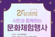 (포탈뉴스통신) 속초시립박물관이 오는 11월 1일 개관 20주년을 맞아 ‘시민과 함께하는 문화체험 행사’를 개최한다. 속초시립박물관은 2005년 개관 이래 속초의 독특한 민속문화를 전시하고 직접 체험할 수 있는 문화공간으로 자리매김해 왔으며, 지난 20년간 설악문화와 속초의 정체성을 발굴‧보존하며 지역사회와 함께 성장해왔다. 이번 20주년 기념행사에서는 속초의 전통문화와 현대문화가 어우러지는 다양한 프로그램이 마련된다. 박물관 야외공연장에서는 강원특별자치도 무형유산인 속초도문농요, 속초아리랑, 속초사자놀이 공연이 진행될 예정이다. 또한 실향민문화촌에서는 (사)한국예술문화단체총연합회 속초지회, (사)강원민예총 속초지부, 속초사자놀이보존회, 속초시립박물관이 함께하는 문화체험 행사도 운영된다. 속초시립박물관은 지난 20년 동안 지역의 역사와 문화를 보존하고, 시민들에게 다양한 문화 체험의 기회를 제공해오며 지역 문화예술의 중심지로 자리해왔다. 앞으로도 전시, 연구, 교육 기능을 통해 속초의 정체성을 담아내고, 시민의 문화적 삶을 풍요롭게 하는 문화예술 거점 공간으로서의 역할을 이