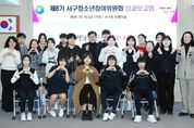 (포탈뉴스통신) 대전 서구는 구청 장태산실에서 제8기 서구청소년참여위원회 성과보고 및 정책 제안 회의를 진행했다고 20일 전했다. 이날 보고회에는 김낙철 부구청장을 비롯해 청소년참여위원과 관계 공무원 등이 참석해, 올 한 해 활동 성과를 공유하고 정책 제안 내용을 논의했다. 청소년참여위원들은 △자원봉사 참여 확대를 위한 인센티브 강화 △문화 및 여가 지원 확대 △주말 체육 프로그램 활성화 등 청소년의 생활 여건 개선과 직결된 3건의 정책을 제안해 주목을 받았다. 제8기 서구청소년참여위원회는 관내 중·고등학생과 대학생 등 청소년 15명으로 구성돼 있다. 이들은 정책 과제 발굴과 설문조사, 정책 제안 대회 참가, 청소년문화의집 모니터링 등 청소년 권익 증진을 위한 다양한 활동을 추진해 왔다. 김낙철 부구청장은 “청소년들이 지역 정책 과정에 직접 참여하며 의견을 제시하는 경험은 의미가 크다”며 “앞으로도 청소년 참여 확대를 위한 제도적 기반을 지속적으로 마련해 나가겠다”고 말했다. [뉴스출처 : 대전시서구]