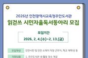 (포탈뉴스통신) 인천광역시교육청주안도서관은 지역주민의 자발적 독서문화 확산을 위하여 2월 4일부터‘2026년 읽걷쓰 시민자율독서동아리’를 모집한다. 이번 모집은 시민이 주체가 되어 독서, 토론, 글쓰기 등 다양한 활동을 펼치는 동아리를 발굴·육성하기 위해 마련했으며, 선정된 동아리에는 활동을 위한 도서와 공간, 운영 물품을 지원하는 등 다양한 혜택을 제공할 예정이다. 모집에 대한 자세한 사항은 주안도서관 누리집을 확인하거나 독서문화과로 문의하면 된다. [뉴스출처 : 인천광역시교육청]