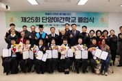 (포탈뉴스통신) 배움의 시기를 잃어버린 지역주민들에게 만학의 꿈을 지켜온 단양야간학교(교장 이상곤)가 단양야간학교 통합교실에서 지난 11월 27일에 값진 스물다섯 번째 졸업식을 개최했다고 밝혔다. 이날 졸업식에는 2025년 1차 및 2차 검정고시에 합격한 졸업생 8명과 가족들, 야간학교 교사, 김문근 단양군수, 이상훈 단양군의회의장, 오영탁 충청북도의원 등 40여명 참석해 뜻깊은 졸업의 기쁨을 함께했다. 금년도 고등과정 검정고시에 합격하여 영예로운 졸업장을 받은 이 모씨(63세)는 “바쁜 일상으로 포기하고 싶은 순간들도 정말 많았지만, 선생님들의 애정 어린 가르침과 같이 배움을 함께한 학우들의 열정에 힘입어 오늘 의미있는 졸업장을 받을 수 있었다”며 고마움을 전했다. 지난 2000년에 처음 문을 연 단양야간학교는 25년의 세월 동안 변함없이 자리를 지키며 배움에 목마른 주민들의 갈증을 해소하고, 더 높은 길로 인도하는 평생학습의 등대 역할을 충실히 수행하여 왔다. 야간학교 자원봉사자 선생님들과 학생들의 꾸준한 노력의 결과, 금년도 졸업생을 포함하여 누적 졸업생이 200명(총 201명)을 넘는 성과를