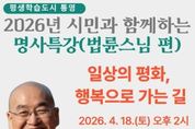 (포탈뉴스통신) 통영시는 오는 4월 18일 오후 2시, 통영시민문화회관 대극장에서 '평생학습도시 통영, 2026년 시민과 함께하는 명사초청 강연'의 두 번째 순서로 법륜스님을 초청해 명사 특강을 개최한다. 평화재단 이사장이자 정토회 지도법사인 법륜스님은 즉문즉설 형식의 강연을 통해 사람들의 다양한 고민에 대해 명쾌한 해법을 제시하며 큰 호응을 얻고 있다. 이번 강연은 ‘일상의 평화, 행복으로 가는 길’을 주제로 진행되며, 특히 법륜 스님 특유의 ‘즉문즉설(卽問卽說)’이 예정돼 있어 기대를 모으고 있다. 정해진 주제 없이 현장에서 시민들이 직접 작성한 고민과 번뇌를 ‘즉문함’에 넣으면, 스님이 이를 즉석에서 선택해 명쾌한 해답과 위로를 건네는 소통형 강연으로 꾸며질 예정이다. 특히 삶의 무게와 고통 속에서 길을 찾는 시민들에게 스님의 지혜로운 통찰이 담긴 답변이 실시간으로 전해지며 깊은 공감과 치유의 장이 될 것으로 기대된다. 참석을 희망하는 시민은 사전 신청 없이 당일 현장 방문을 통해 자유롭게 참여할 수 있다. 시 관계자는 “이번 강연이 시민들에게 마음의 여유와 삶의