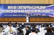 (포탈뉴스통신) 대전시교육청은 11월 8일'제5회 대전광역시교육감배 2025 전국 유소년 드론축구대회'를 배재대학교 21세기관 스포렉스홀에서 개최하여 성공적으로 마무리했다고 밝혔다. 이번 대회는 드론 산업이 주도하는 4차 산업혁명 시대에 걸맞은 창의ㆍ융합형 드론 인재 양성을 목적으로, 전국 초ㆍ중학교 유소년 드론축구팀 24개 팀이 참가해 열띤 경쟁을 펼쳤다. 참가팀은 예선전을 시작으로 16강, 8강, 4강, 결승에 이르는 토너먼트를 거치며 갈고닦은 기량을 발휘했다. 결승전에서는 구미신당팀(구미신당초등학교)이 SCJ YOUTH팀(충주덕신초, 충주중앙탑초, 충주금릉초 연합팀)을 상대로 2대 1의 세트 스코어로 승리하며 2025년 챔피언의 자리에 올랐다. 대전에서는 장동초등학교가 동상을 수상했다. 입상한 1~4위 팀에게는 대전광역시교육감상과 트로피가 수여됐다. 대전시교육청은 지난 2021년, 전국 최초로 유소년 드론축구대회를 출범한 이래 올해로 5년재 전국 규모로 개최해오고 있다. 이번 대회는 단순한 스포츠 경기를넘어, 미래 과학도시 대전의 이미지 제고, 청소년들의 창의적 진로 탐색 기회 확대, 드론 콘텐츠 산업과