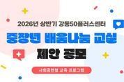 (포탈뉴스통신) 서울 강동구는 중장년 세대가 배움을 통해 지역과 소통하고, 경험을 지역 발전에 활용할 수 있도록 2026년 상반기 강동50플러스센터 ‘중장년 배움나눔 교실’ 제안 공모를 실시한다고 11일 밝혔다. 이번 공모는 단순한 취미나 자기 계발 차원의 교육을 넘어, 배움이 사회공헌 활동으로 연계될 수 있는 프로그램을 발굴하는 데 목적이 있다. 올해 시범운영에서는 ‘책놀이지도사 양성’, ‘통증 잡는 시니어 스트레칭 전문가 양성’ 등 8개 프로그램을 진행했으며, 수료생들이 커뮤니티를 구성해 봉사활동 등 다양한 지역 활동을 이어가는 의미 있는 성과를 거두었다. 공모에는 중장년층의 사회참여를 촉진할 수 있는 강의 콘텐츠를 보유한 강사라면 누구나 참여할 수 있으며, 신청 기간은 11월 17일까지이다. 전시·공연·체험 등 실습 중심의 프로그램은 물론, 수강 이후에도 참여자들이 스스로 모임을 이어가며 배움을 나눌 수 있는 창의적인 강좌 아이디어를 폭넓게 접수한다. 제안된 프로그램은 서면 심사와 대면 심사를 거쳐 최종 선정되며, 선정된 프로그램은 2026년 1월부터 3월까지 운영될 예정이다. 선정 강사에게는
