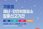 (포탈뉴스통신) 군산시가 12월부터 내년 2월까지 ‘겨울철 재난·안전 위험요소 집중신고 기간’을 운영한다고 4일 밝혔다. 이번 기간에는 겨울철에 발생 가능성이 높은 ▲대설 ▲ 한파 ▲화재 ▲축제·행사 등 4가지 유형의 위험 요소를 대상으로 시민이 직접 신고할 수 있다. ‘대설’ 분야는 △도로 제설 미흡 △제설함 관리 불량 △시설물 붕괴 위험이며, ‘한파’ 분야는 △인도 결빙 △고드름 낙하 △한파 쉼터 불편 등이다. ‘화재’ 분야는 △비상구 물건 적치 △소화 시설 불량 △불법 취사·소각 등이고, ‘축제·행사’ 분야는 △인파 밀집 우려 △행사장 시설 파손 등이 해당한다. 신고는 ‘안전신문고’ 앱이나 누리집에서 가능하며 ‘겨울철 집중신고’를 선택하거나 앱 내 퀵 메뉴 기능으로 편리하게 이용할 수 있다. 조치 결과는 문자 등으로 안내된다. 군산시 관계자는 “군산시가 안전에 대한 관심도가 높은 만큼, 이번 겨울철 재난·안전 위험요인 집중신고제 기간에도 안전 위험요인을 발견하면 적극적인 신고를 당부드린다.”라며 “신고한 건에 대해서는 신속하게 조치하고, 투명하게 안내할 수 있도록 최선을 다하겠다.