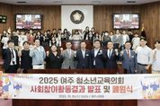 (포탈뉴스통신) 경기도여주교육지원청은 10월 15일, 여주시의회 본회의장에서 '2025 여주 청소년교육의회 발표회 및 폐원식'을 개최했다. 이번 행사는 지난 6개월 동안 여주 청소년들이 직접 기획·참여한 사회참여활동 결과를 공유하고, 의정활동을 마무리하는 자리로 마련됐다. 이날 행사에는 김상성 교육장을 비롯해 박두형 여주시의회 의장과 여섯 명의 시의원, 청소년교육의회 의원 36명 및 학부모가 참석해 청소년들의 성장과 노력을 함께 축하했다. 여주교육지원청 김상성 교육장은 격려사에서 “청소년의 목소리가 지역사회를 변화시키는 힘이 된다”며 “여러분의 작은 실천이 여주의 미래를 밝히는 등불이 되기를 바란다”고 전했다. 또한 박두형 여주시의회 의장은 “여주시의회도 여러분의 제안을 귀 기울여 듣고, 청소년이 행복한 도시를 만드는 데 함께하겠다”고 격려했다. 이날 발표회에서는 청소년의회 5개 상임위원회(환경·복지·인성·시설·교육)가 각 분과별로 진행한 사회참여활동과 정책제안서를 공유했다. 환경위원회는 ‘지속 가능한 여주를 위한 생활 속 실천 방안’을, 복지위원회는 ‘보행자 안전을 위한