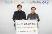 (포탈뉴스통신) 인천 서구는 지난 15일 보스시큐리티(주)으로부터 이웃돕기 성금 500만 원을 전달받았다. 보스시큐리티(주)는 인천 미추홀구에 본사가 위치하며, 인천 서구에도 사업장을 두고 정보통신, 시설 경비 및 건물 관리 용역 등 여러 분야의 사업을 진행하는 회사이다. 보스시큐리티(주) 공병석 대표이사는 “추운 겨울을 나야하는 어려운 이웃에게 도움이 됐으며 좋겠으며, 앞으로도 지속적인 후원을 이어가겠다”라고 밝혔다. 강범석 서구청장은 “지역 내 주민을 위해 따뜻한 관심과 지원을 보내주셔서 감사드리며, 전해주신 나눔의 마음이 어려운 이웃들에게 잘 전달될 수 있도록 노력하겠다”라고 전했다. [뉴스출처 : 인천시서구]