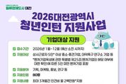 (포탈뉴스통신) 대전시는 2026년 청년인턴 지원사업에 참여할 구인 기업과 구직 청년 80명을 27일부터 공개 모집한다. 청년인턴 지원사업은 지역 내 일반 미취업 청년에게 산업현장 인턴 근무를 통한 일․경험 기회를 제공하고, 정규직 전환을 유도하는 등 지역 청년의 경력개발을 지원하며, 지역 기업의 원활한 인력수급을 돕기 위한 사업이다. 참여 대상은 대전 소재 상시근로자 5인 이상 중소․중견기업, 대덕특구 연구소 기업과, 대전 거주 만 18세 이상 만 39세 이하 미취업 청년이면 가능하다. 이 사업을 통해 구직 청년은 3개월간 지역 산업현장에 인턴으로 근무하며 일․경험 기회를 제공받으며, 기업은 월 200만 원의 인건비를 지원받아 2026년 최저임금 차액분 이상의 인건비를 기업이 부담하여 인턴에게 지급하게 된다. 참여를 원하는 인턴은 신청일 기준 미취업 상태의 청년이며, 기업은 대전시 지원금을 포함 최저임금 준수 및 4대 보험가입은 필수이고 정부 등으로부터 별도 지원금을 받지 않아야 한다. 신청 및 공고문 확인은 대전일자리정보망(을 통해 가능하며, 기타 궁금한 사항은 대전일자리지원센터에