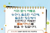 (포탈뉴스통신) 서귀포시는 2026년 아동 틈새돌봄 시범사업을 연장 운영(2026년 1월 ~ 8월)한다고 밝혔다. 시정운영 7대 추진전략으로 2025년 5월부터 서귀포시에서만 중점 추진하고 있는 아동 틈새돌봄 시범사업은 주말뿐만 아니라 설, 추석 당일을 제외한 공휴일에(9시~18시) 돌봄이 가능하며 초등학생이면 누구나, 필요한 시간에, 편리한 장소에서 일시돌봄 서비스를 이용할 수 있다. 지난 3일부터 아동 틈새돌봄 시범사업 참여기관 4개소가 운영을 시작하여 보호자의 다양한 근로상황에 따른 돌봄 사각지대를 해소하고 촘촘한 돌봄제공에 최선을 다하고 있다. 특히, 2026년 아동 틈새돌봄 시범사업은 제주도가 추진 중인 초등주말돌봄 ‘꿈낭’(동홍초 2024년, 신례초 2025년, 성산초 2026년 예정/3개소) 운영 지역을 고려하여 서비스 지역의 중복없이 서귀포시 전 지역 돌봄 시행을 위해 동지역 중 초등학생 연령대가 많은 대천·대륜동에 1개소를 공모를 통해 발굴·추가 운영(2026년 4월 ~ 8월)할 계획이다. 이용료는 무료(점심/간식 제공)로 기관별 20명 이내이며 이용 절차는 아동의 보호자가 수행기관
