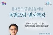 (포탈뉴스통신) 서울 동대문구가 중장년의 ‘인생 2막’ 설계를 돕기 위한 공개 포럼과 특강을 연다. 동대문구는 29일 오후 1시 30분 구청 2층 다목적강당에서 ‘동대문50플러스센터 동행포럼·명사특강’을 개최한다고 밝혔다. 2026년 상반기 개관을 앞둔 동대문50플러스센터의 운영 방향을 주민과 공유하고, 지역 여건에 맞는 프로그램을 함께 모색하기 위한 자리다. 이번 행사는 동대문50플러스센터(센터장 이재근) 주관으로 진행되며, 지역 주민 200여 명이 참석할 예정이다. 구는 급격한 산업·일자리 변화 속에서 재취업, 전직, 사회 공헌 등 다양한 경로를 고민하는 중장년층의 수요가 커지고 있는 만큼, 센터 개관 전에 주민 의견을 폭넓게 듣고 협력 기반을 만들겠다는 계획이다. 행사는 2부로 구성된다. 1부 ‘동행포럼’에서는 기조연설과 주제 발표를 시작으로 지정토론, 종합토론, 질의응답이 이어진다. 센터의 역할과 지역 내 연계 방안, 중장년 맞춤형 지원 모델 등 ‘개관 이후 무엇을 어떻게 채울 것인가’가 주요 논의 주제다. 2부에서는 인지심리학자 김경일 교수가 ‘행복의 조건을 다시 묻다–중년의 동기와 삶의 의미 찾기’를 주제로 특강