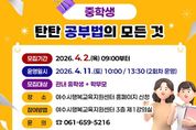(포탈뉴스통신) 여수시가 오는 4월 11일 여수시행복교육지원센터에서 관내 중학생과 학부모를 대상으로 ‘중학생 탄탄 공부법의 모든 것’ 특강을 개최한다. 이번 특강은 유튜브와 SNS 등에서 ‘곰쌤교실’로 알려진 공부법‧입시교육 전문가 고창훈 강사가 강단에 선다. 특강에서는 성적 향상 문제로 고민이 많거나 체계적인 공부법으로 성적을 탄탄하게 올리고 싶은 학생들을 위한 과목별 핵심 학습법, 메타인지 자기주도 학습전략, 노트 정리법 등 실천 중심의 다양한 공부법에 대해 강의할 예정이다. 특강은 중학교 1~3학년과 학부모를 대상으로 ▲오전 10시 ▲오후 1시 30분, 총 2회에 걸쳐 각 2시간씩 진행된다. 참여를 희망하는 학생은 4월 2일 오전 9시부터 여수시행복교육지원센터 누리집을 통해 사전 신청 후 참여할 수 있으며, 참여자 전원에게 공부법 가이드 자료 등을 제공한다. 기타 자세한 내용은 여수시 평생교육과로 문의하면 된다. 시 관계자는 “특강에서 제공되는 현실적 공부법이 올바른 공부 습관 형성과 학교 성적 향상에 도움이 되길 바란다”며, “앞으로도 다양한 교육 지원 프로그램을