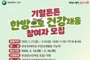 (포탈뉴스통신) 대전 서구는 이달 19일부터 ‘기혈튼튼, 한방으로 건강채움!’ 프로그램 참가자를 모집한다. 관저주민건강센터에서 진행되는 이번 프로그램은 한의약 건강 관리법을 일상에서 쉽게 실천하도록 돕기 위해 마련됐다. 주요 내용으로는 △기초 검사(혈압, 혈당, UBO맥파검사 등) 및 한의약 건강 상담 △한의사와 함께하는 건강 관리 교육 △경혈 지압법 △동의보감(안마도인) 체조 △호흡 명상법 등을 담았으며, 전문 한의사 인력이 이론 및 실습 교육을 병행한다. 60세 이상 신체활동이 가능한 지역 주민 누구나 신청할 수 있으며, 오는 19일부터 26일까지 유선으로 선착순 접수한다. 신청 및 추가 문의는 센터로 전화하면 된다. [뉴스출처 : 대전시서구]