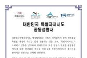 (포탈뉴스통신) 세종·제주·강원·전북 4개 특별자치시도가 광역 행정통합에 따른 역차별을 우려하며 행정수도특별법을 비롯한 4개 특별자치시도 관련 특별법의 조속한 제정을 거듭 촉구했다. 세종특별자치시와 제주특별자치도, 강원·전북특별자치도로 구성된 ‘대한민국특별자치시도 행정협의회’는 21일 이같은 내용을 담은 4개 시도지사 명의의 공동성명서를 발표했다. 이는 최근 광역 행정통합 특별법 제정과 정부의 통합 인센티브 발표 등 행정통합 논의가 속도감 있게 진행되는 데 비해 4개 특별자치시도 관련 법안 처리는 계속 지연되고 있다는 문제의식에 따라서다. 최근 정치권에서 광주‧전남과 대전‧충남 통합 특별법 제정을 매우 속도감 있게 진행되고 있으나 이보다 먼저 발의된 ‘행정수도특별법’과 ‘강원‧제주‧전북특별법’ 입법은 논의 조차 되지 않는 상황이다. 또한, 정부의 ‘5극3특 균형성장’이라는 국정과제 안에서 4개 특별자치시도에 대한 지원 방안이 전혀 없고, 통합특별시에 비해 상대적 박탈감과 지역 불균형이 더 벌어질 수 있다는 문제점이 제기되고 있다. 이에 협의회는 광역 행정통합이 정부의 과감한 지원 속에서 추진되는 데 비해 같은 ‘5극3특 균형성장’이라는 국정과제에 근거한 4개