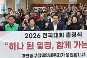 (포탈뉴스통신) 대전 동구는 지난 23일 동구청 대회의실에서 ‘2026년 동구장애인체육회 전국대회 출정식’을 개최했다고 밝혔다. 이날 출정식에는 박희조 동구청장을 비롯해 오관영 동구의회 의장, 종목별 협회 임원 및 선수 등 60여 명이 참석했으며, 출정복 전달과 선수대표 결의문 낭독을 통해 선수단의 각오를 다졌다. 특히 참가 선수들은 그동안 갈고닦은 기량을 바탕으로 정정당당한 경기와 최선을 다하는 자세로 동구의 명예를 드높일 것을 다짐했다. 구는 이번 출정식을 통해 파크골프, 게이트볼, 론볼 등 3개 종목 선수들의 사기 진작과 화합을 도모하고, 장애인 체육 활성화를 위한 지원을 지속적으로 확대해 나갈 방침이다. 선수단은 오는 9월부터 11월까지 ▲론볼(9월 29일 인천광역시장배 전국대회) ▲게이트볼(10월 23일 금산인삼배) ▲파크골프(10월 31일 중앙회장배 전국대회) 등 각종 전국대회에 순차적으로 출전할 예정이다. 박희조 동구청장은 “장애를 넘어 끊임없이 도전하는 선수들의 열정과 노력에 진심어린 응원을 전한다”며 “앞으로도 누구나 차별 없이 스포츠를 즐기고 역량을 펼칠 수 있도록 장